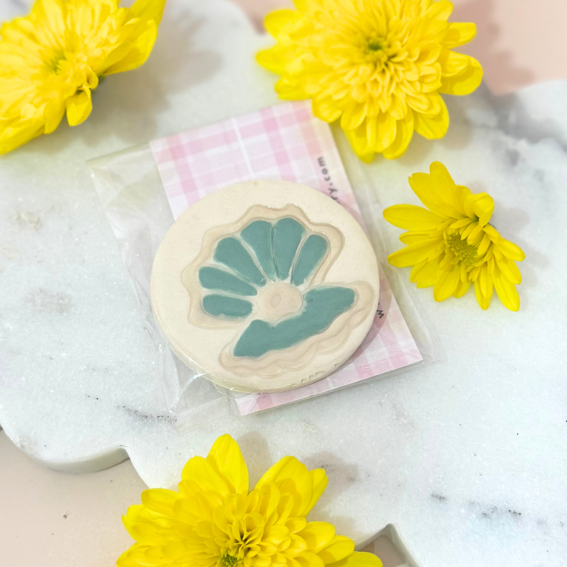 Bring a splash of seaside charm to your fridge with this delightful hand-painted clam shell magnet! Each piece is uniquely decorated with vibrant colours and whimsical details, making it a cheerful conversation starter. Perfect for displaying notes, photos, or just adding a pop of personality to your kitchen. A little treasure from the ocean that sticks around!